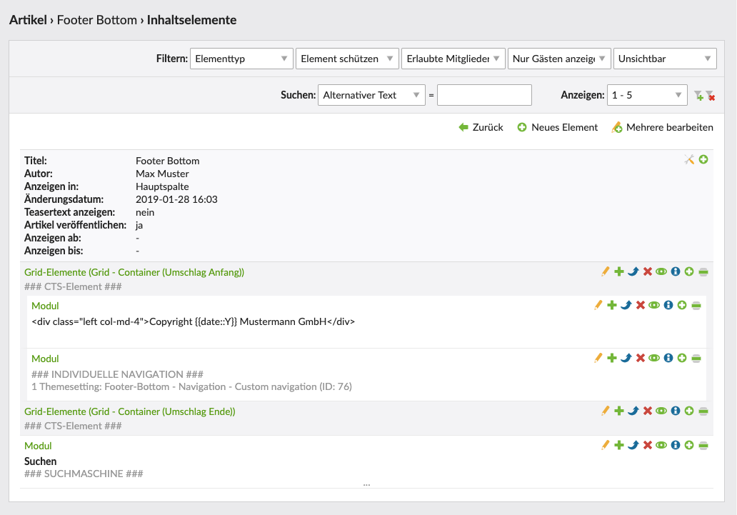In den nachfolgenden Screenshots sehen Sie die Module und Elemente für die CSS im Theme enthalten sind.