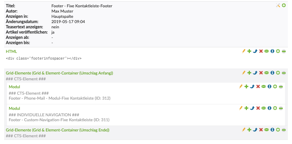 Sollten Sie einen Bereich wie z.B. Footer - Fixe Kontaktleiste-Footer nicht benötigen, deaktivieren Sie den Artikel.